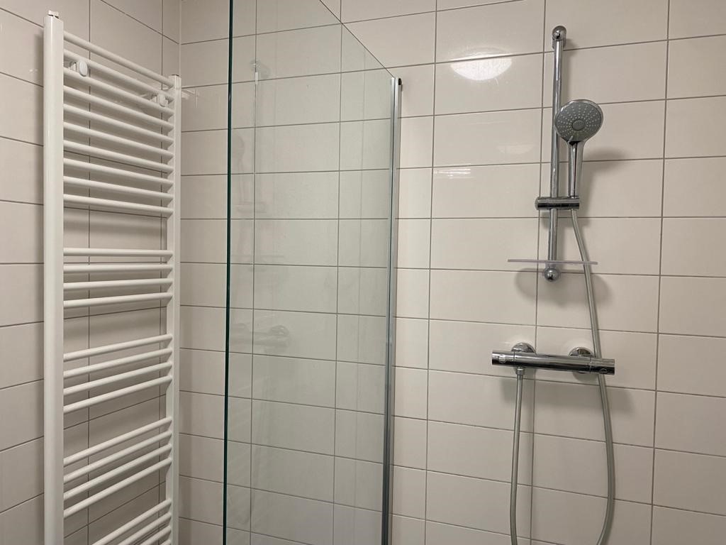 Badkamer v.v. inloopdouche en wastafel en aansluiting wasmachine.