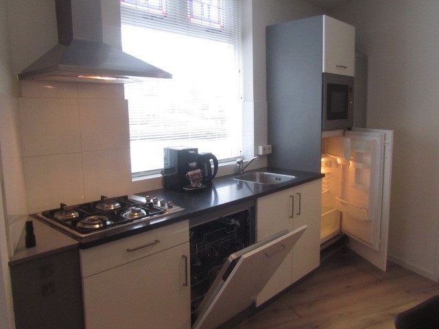 Huren in Eindhoven? Net buiten de ring, nabij het centrum gelegen, volledig gestoffeerd & gemeubileerd 2-kamer appartement op de begane grond met luxe keuken, luxe sanitair en ruime tuin.