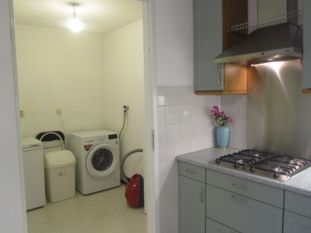 Open moderne keuken voorzien van alle benodigde apparatuur zoals; koelkast, oven, 4-pits gasfornuis. Inpandige ruime berging met o.a. wasmachine en extra vriezer.