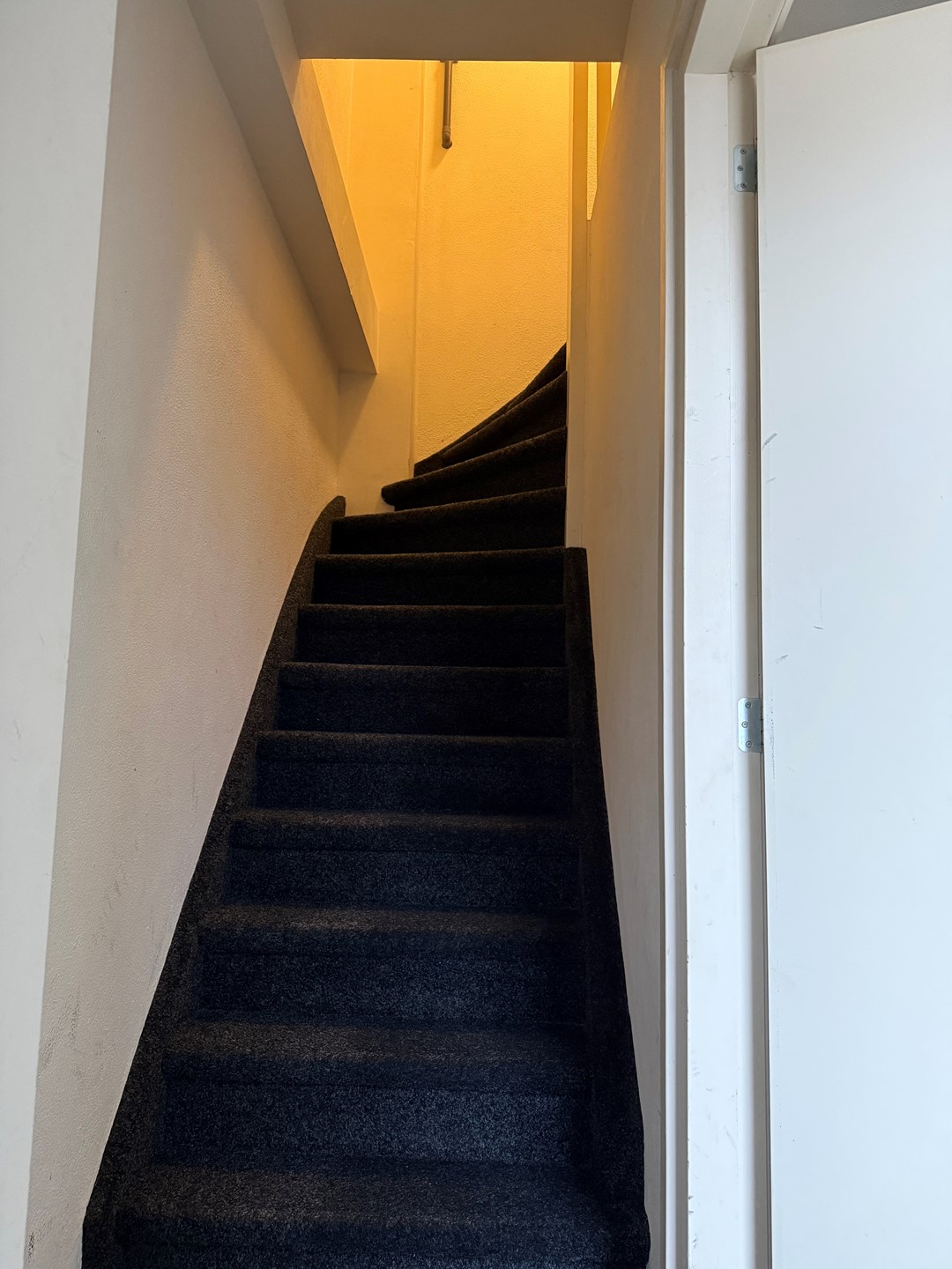 Via vaste trap naar overloop met achterkamer te gebruiken als woonkamer en voorzijde slaapkamer. Beiden kamers zijn v.v. vloerbedekking.