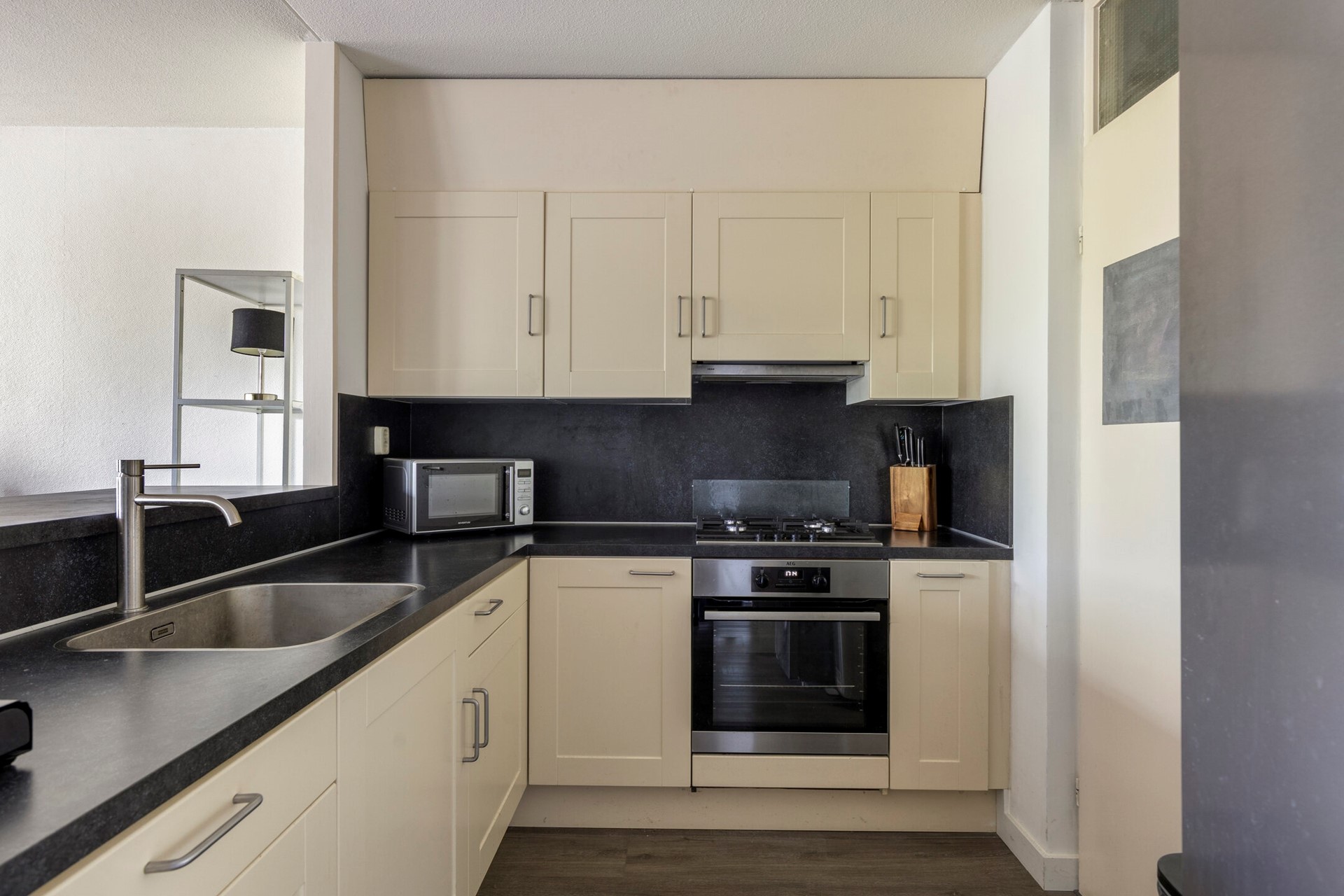 De half open keuken sluit naadloos aan op de woonkamer en is in 2023 gemoderniseerd en voorzien van diverse inbouwapparatuur. Daarnaast beschikt de woning over een praktische aparte was-/bergruimte met aansluiting voor de wasmachine.