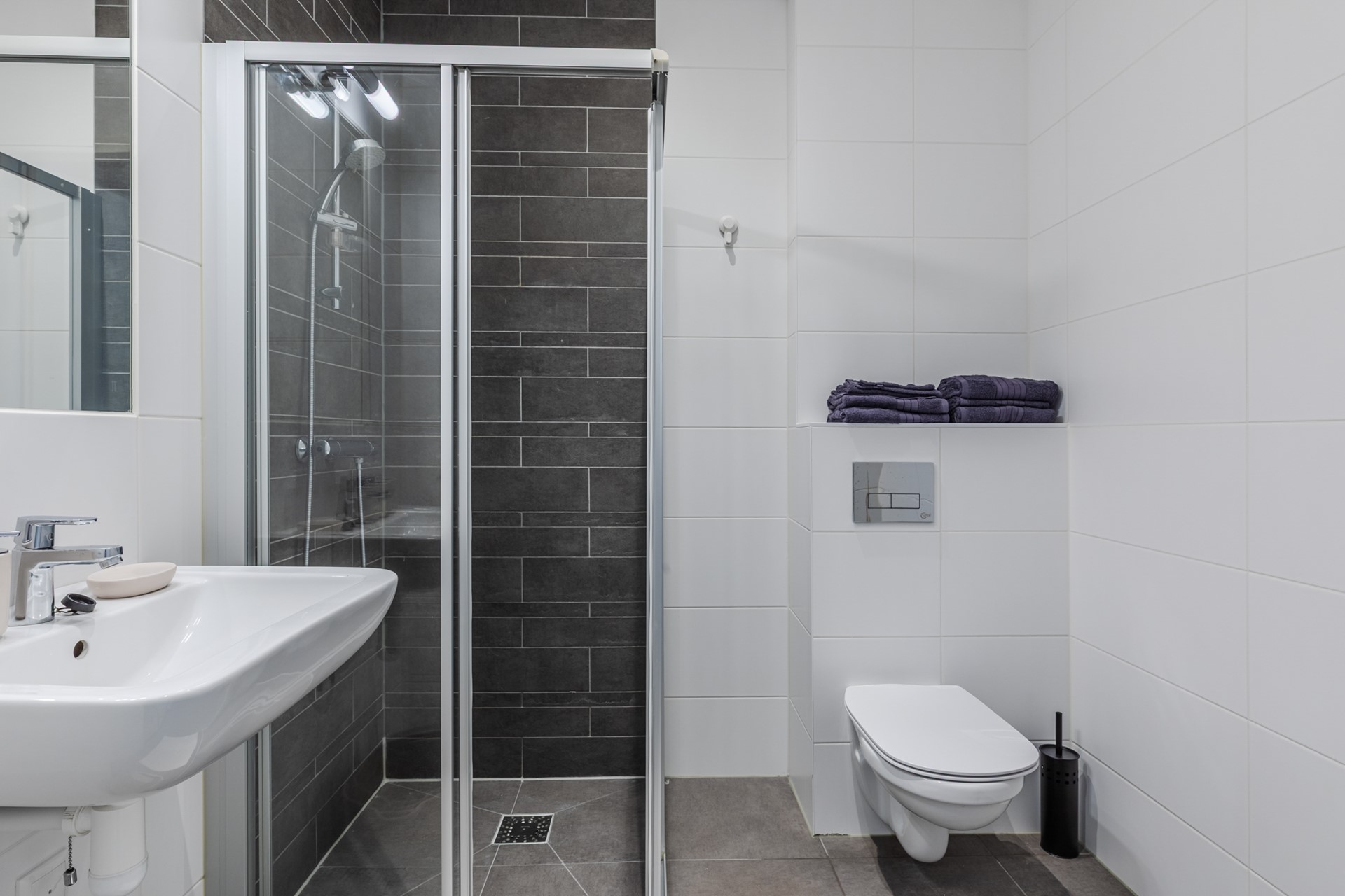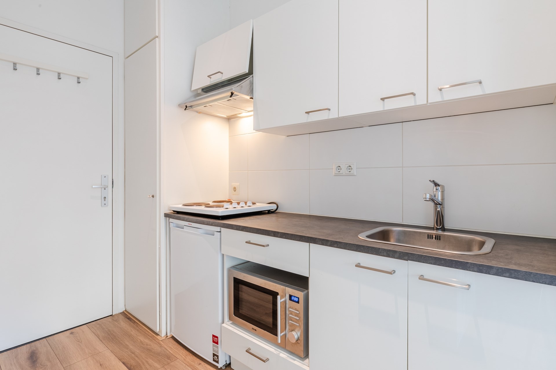 Dit appartement beschikt over een moderne keuken voorzien van een kookplaat, afzuigkap, koelkast en combimagnetron. De strakke badkamer beschikt over een heerlijke douche, een hangcloset, desginradiator en vaste wastafel.